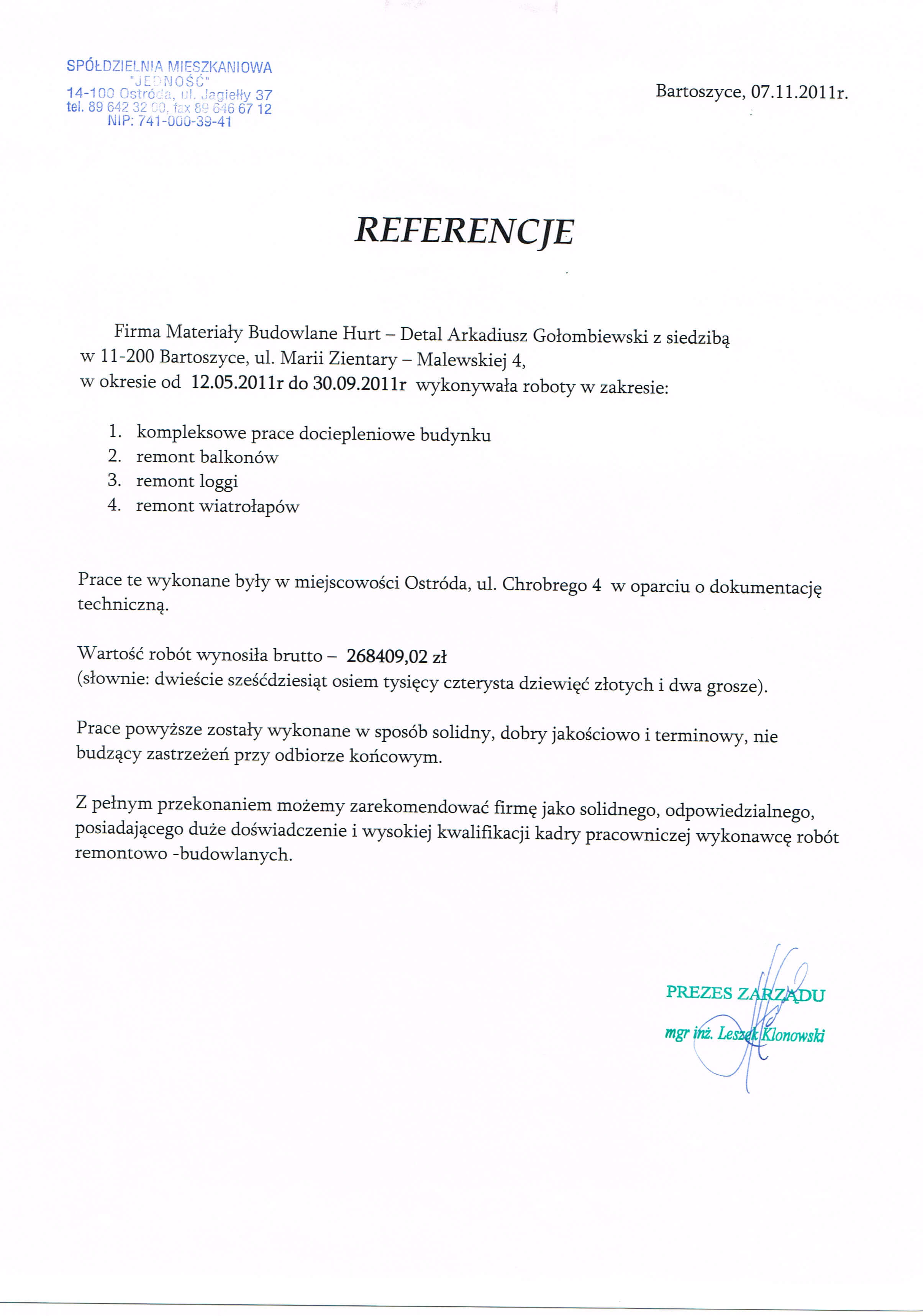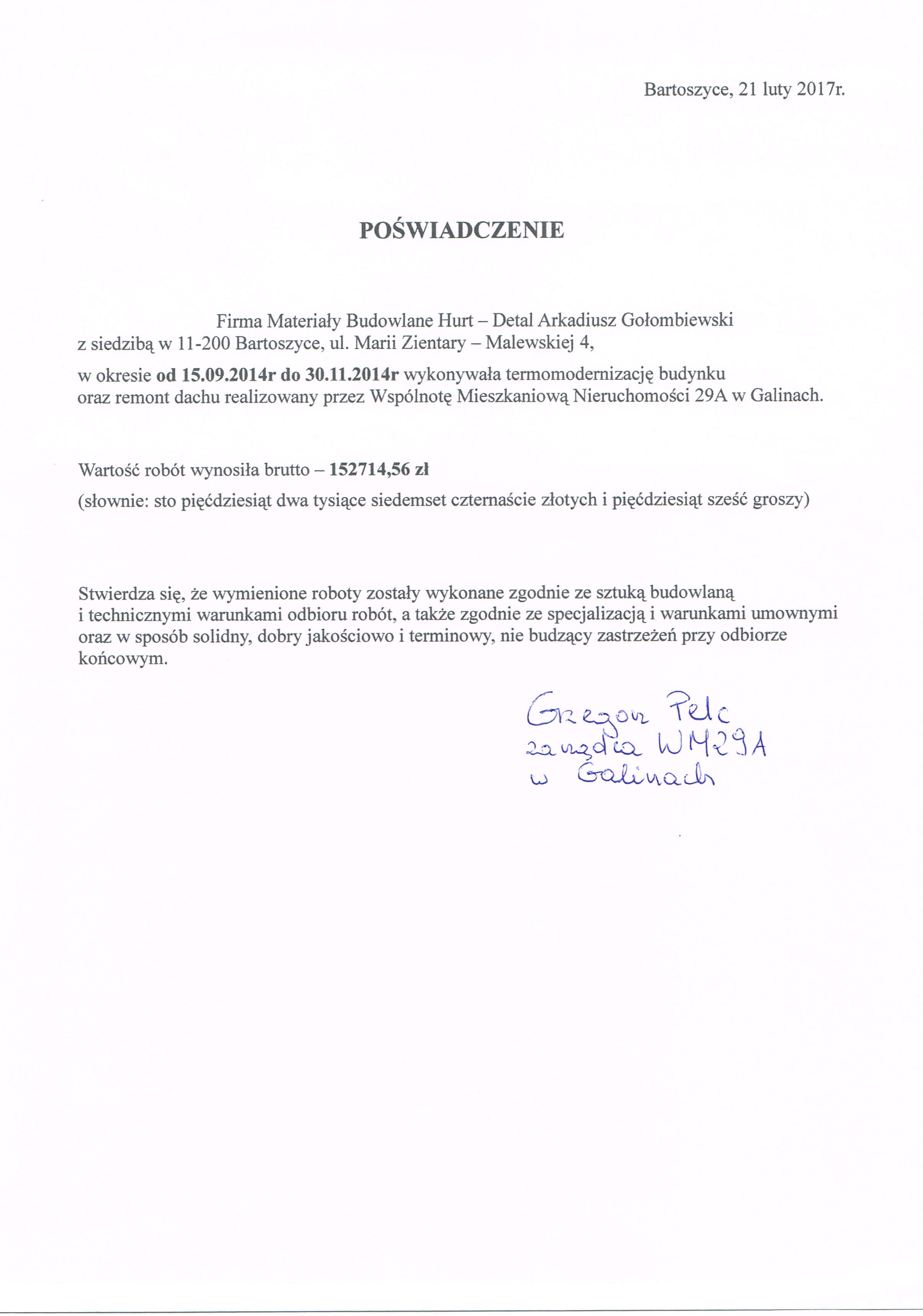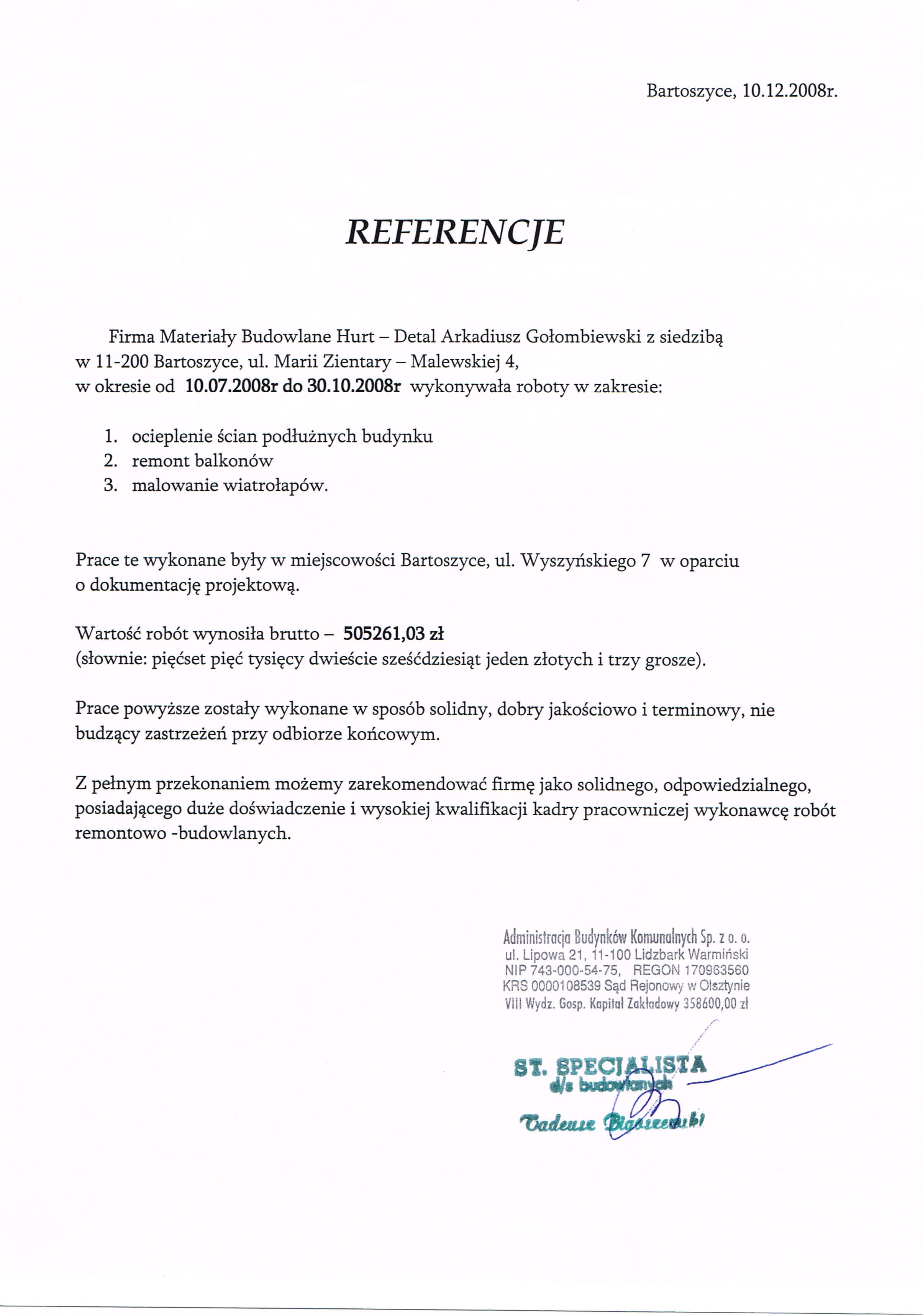 Na poniższej podstronie internetowej znajdą Państwo przykładowe referencje od zadowolonych Klientów na temat wykonywanych przez nas prac i zleceń. Realizujemy usługi zarówno dla osób prywatnych, jak i firm oraz instytucji, dlatego też prezentujemy opinie od wielu Klientów. Jako że specjalizacją naszej firmy jest izolacja pianką poliuretanową, opinie na temat realizacji owej usługi będą jednymi z najczęściej występujących pośród naszych referencji. Opinii (zazwyczaj pochlebnych) na temat konkretnych firm znaleźć można w internecie mnóstwo – na forach, blogach lub pod różnego rodzaju artykułami w serwisach online. W sieci każdy może niemal bez przeszkód podzielić się swoją wypowiedzią na dowolny temat. Na stronach internetowych dostępne są też nierzadko sprzeczne ze sobą informacje. Dlatego tak ważna jest weryfikacja rzetelnych i sprawdzonych opinii od osób poświadczających referencje swym prawdziwym imieniem i nazwiskiem.