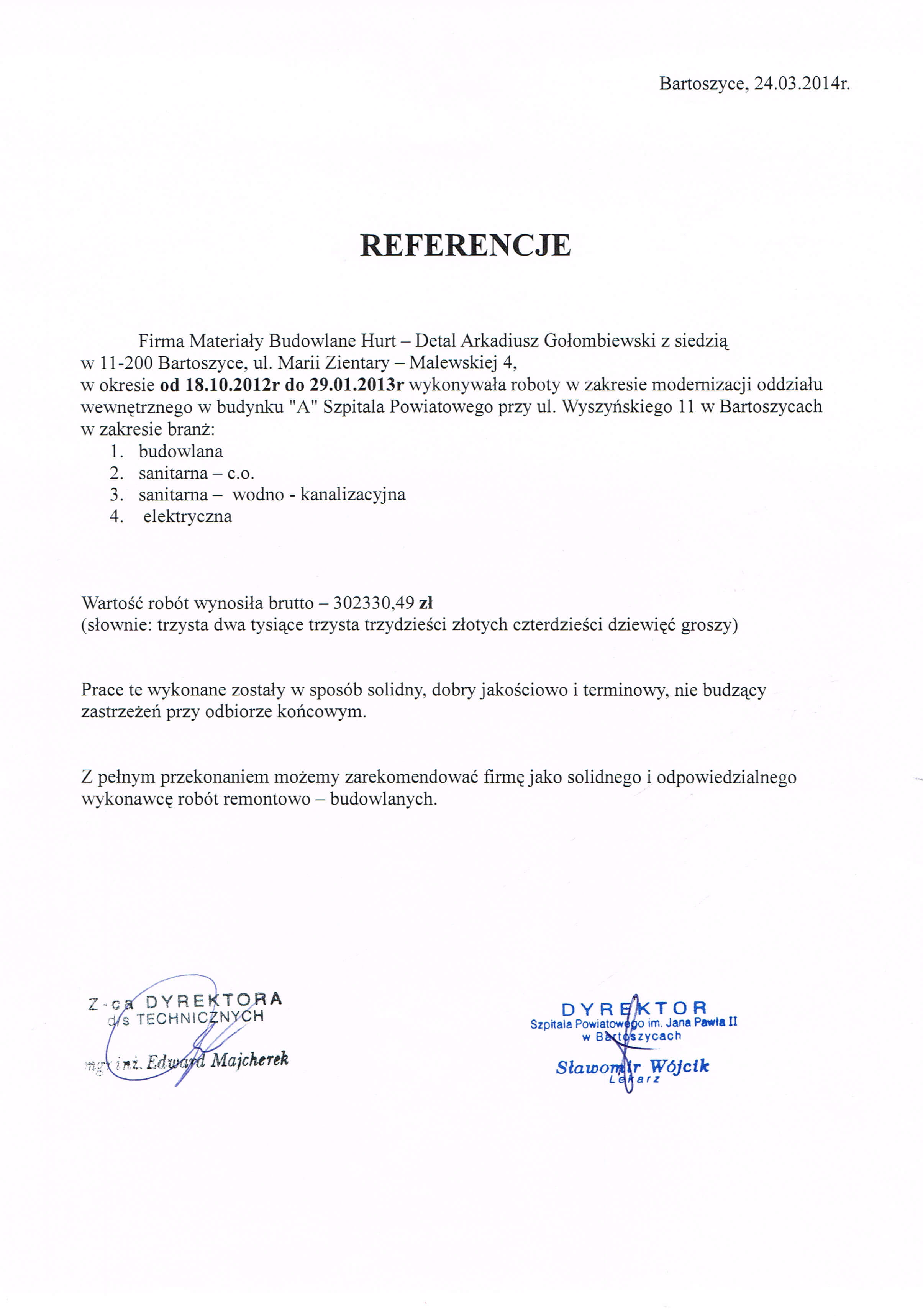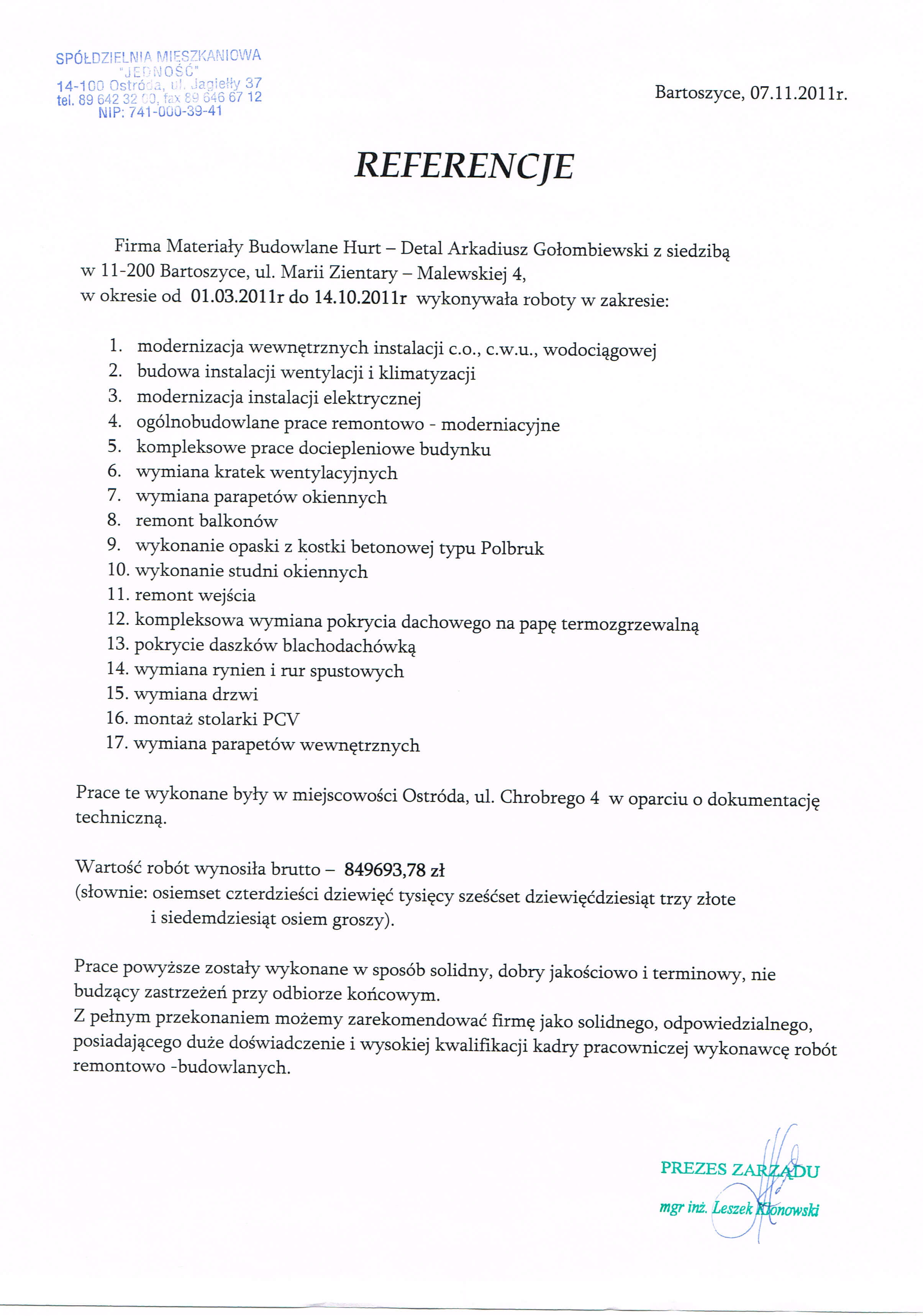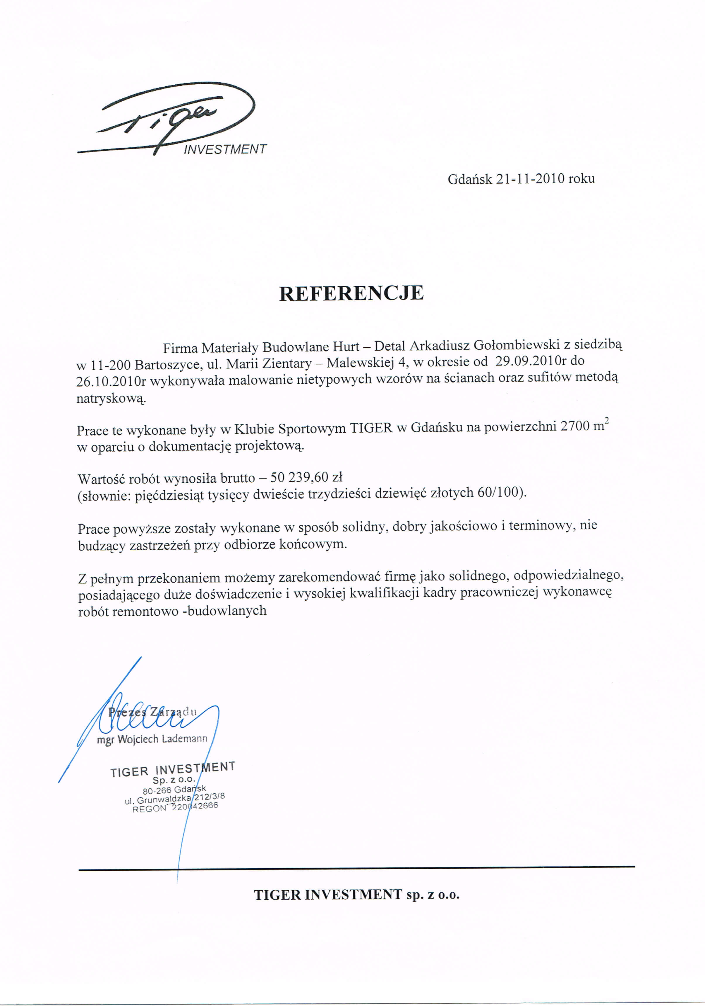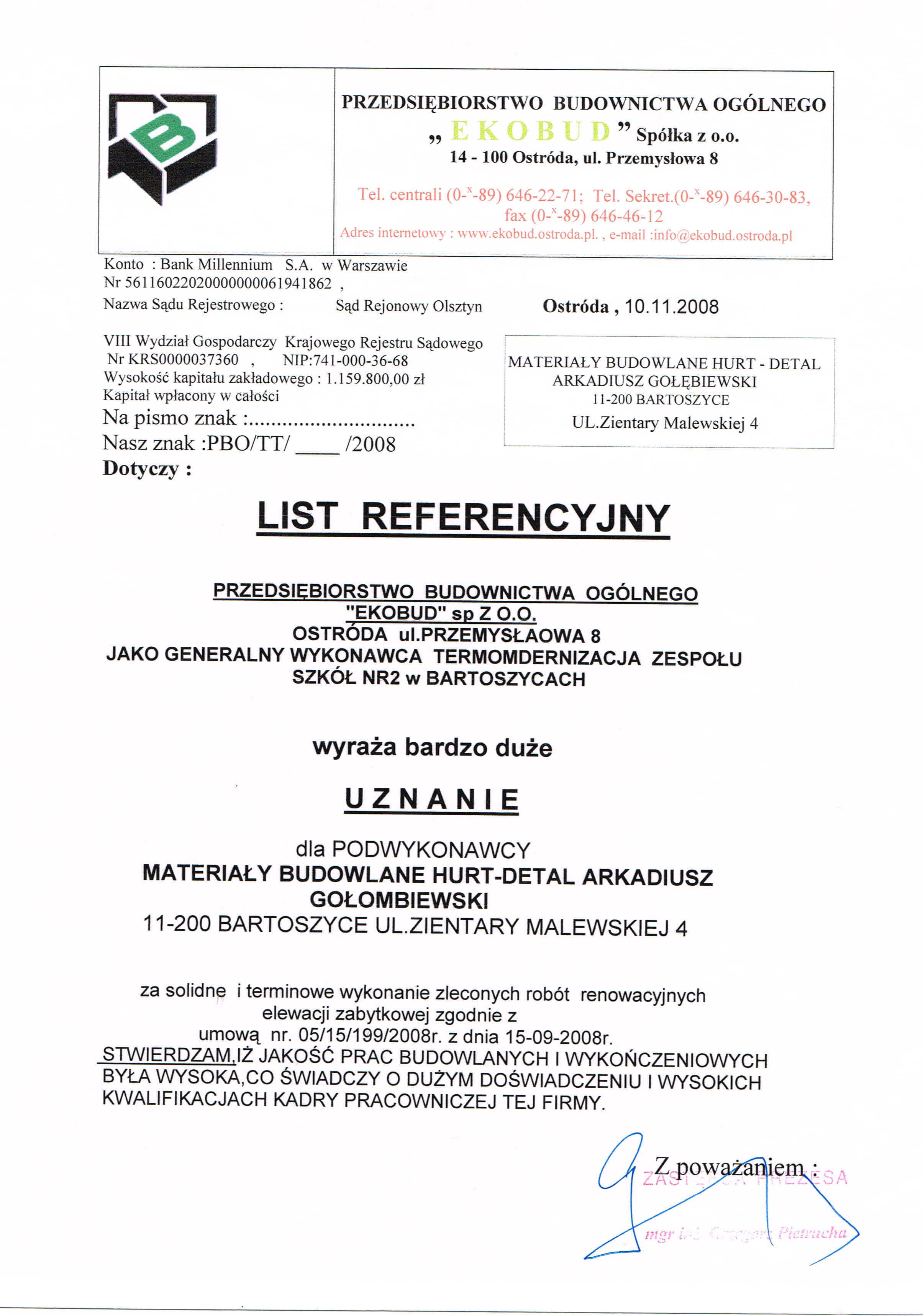 Na poniższej podstronie internetowej znajdą Państwo przykładowe referencje od zadowolonych Klientów na temat wykonywanych przez nas prac i zleceń. Realizujemy usługi zarówno dla osób prywatnych, jak i firm oraz instytucji, dlatego też prezentujemy opinie od wielu Klientów. Jako że specjalizacją naszej firmy jest izolacja pianką poliuretanową, opinie na temat realizacji owej usługi będą jednymi z najczęściej występujących pośród naszych referencji. Opinii (zazwyczaj pochlebnych) na temat konkretnych firm znaleźć można w internecie mnóstwo – na forach, blogach lub pod różnego rodzaju artykułami w serwisach online. W sieci każdy może niemal bez przeszkód podzielić się swoją wypowiedzią na dowolny temat. Na stronach internetowych dostępne są też nierzadko sprzeczne ze sobą informacje. Dlatego tak ważna jest weryfikacja rzetelnych i sprawdzonych opinii od osób poświadczających referencje swym prawdziwym imieniem i nazwiskiem.
